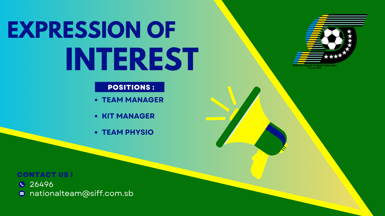The Solomon Islands Football Federation (SIFF) is seeking expressions of interest from suitably qualified/experienced individuals for the management of the Solomon Islands international football teams for the 2026 football season. Interested persons are invited to submit their applications for the following teams: